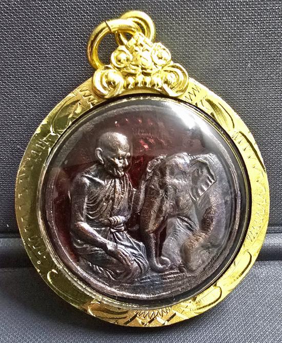 เหรียญ "โชคดี" ตำนานสามเณรเลี้ยงช้าง หลวงปู่ฝั้น ปสาโท วัดศรีถมอรัตน์ เพชรบูรณ์ เหรียญหล่อเนื้อ นวะโลหะ(2หน้า) ลงยาแดง หลังยาน้ำเงิน เลี่ยมกรอบชุบทองพับหลัง หมายเลข ๕....พร้อมกล่อง เบาๆเคาะแรกครับ
