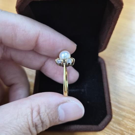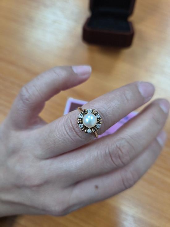 แหวนไข่มุก Akoya ล้อมเพชรแท้