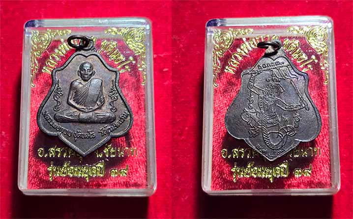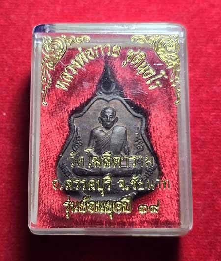 เหรียญ หลวงพ่อกวย วัดโฆสิตาราม ปี2539 หลังหนุมาน เชิญธง รมดำ พร้อมกล่องเดิม แท้ๆ100%