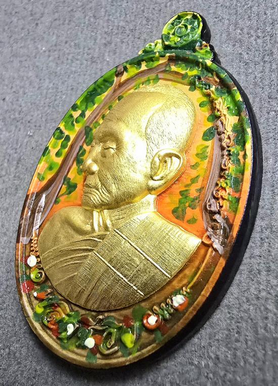 เหรียญเพ้นทั้งองค์ เพ้นลายต้นไม้ หน้ากากเงิน ชุบน้ำทอง