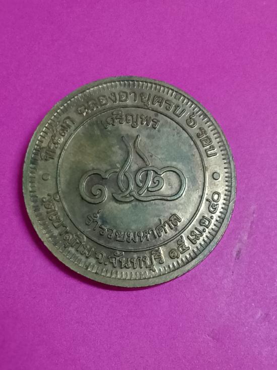 เหรียญหลวงพ่อสมชาย ฐิตวิริโย(พระวิสุทธิญาณเถร) วัดเขาสุกิม จ.จันทบุรี ที่ระลึกฉลองอายุครบ 6 รอบ เจริญพร72 ร่ำรวยมหาศาล ปี2540
