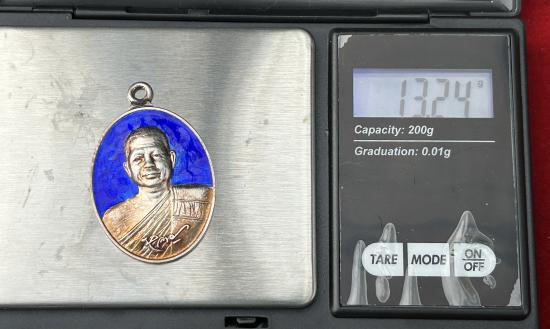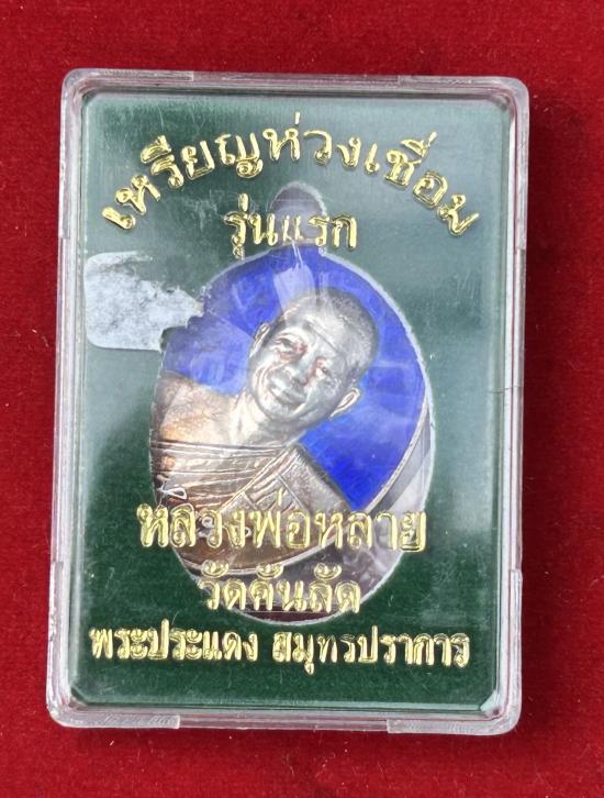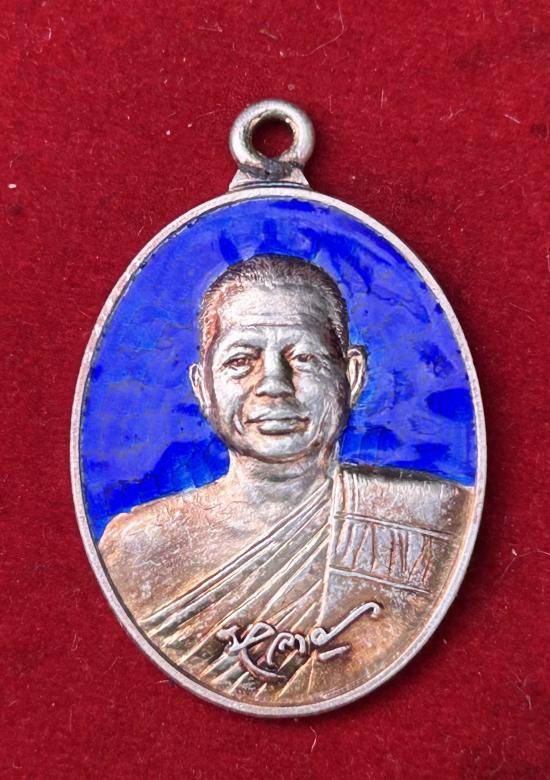 เหรียญห่วงเชื่อมรุ่นแรก หลวงพ่อหลาย วัดคันลัด จ.สมุทรปราการ เนื้อเงินลงยาน้ำเงินมีจาร
