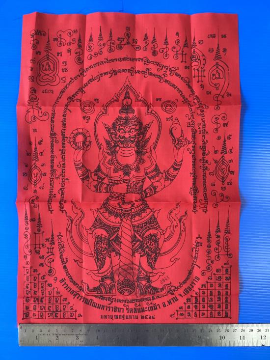 ผ้ายันต์ ท้าวเวสสุวรรณโณมหาราชิกา มหาบุญกฐินปี64 ครูบาวิรุต วัดสันมะเหม้า จ.เชียงราย สีแดง ขนาด 11 นิ้ว x 15.5นิ้ว