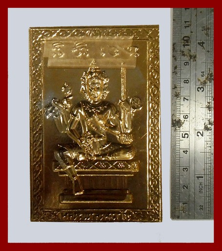 สวยมาก-100-แผ่นปั้มท้าวมหาพรหม หลังแบบ "นะ ชา ลี ติ " เนื้ออลูมิเนี่ยมกะไหล่ทอง ขนาด 7+11 ซม.