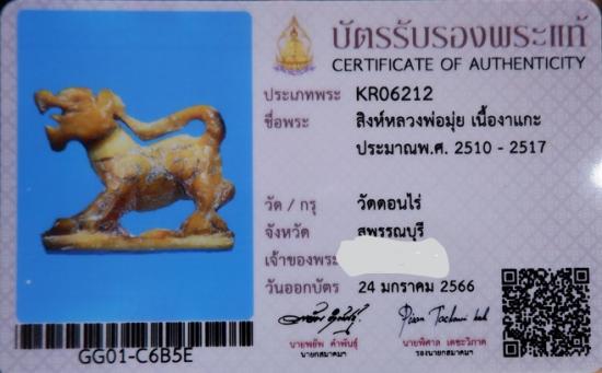 ***สิงห์สาริกา งาแกะ หลวงพ่อมุ่ย วัดดอนไร่ สุพรรณบุรี พร้อมบัตรรับรองพระแท้