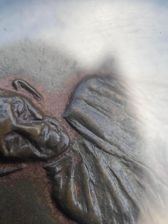 สภาพใช้ คลาสสิค ๆ แกะมาจากกรอบทองเก่า ๆ เจ้าของเชื่อมทองคำไว้ตรงหูเหรียญที่ตัดครับ รับประกันพระแท้ตามกฎทุกประการ