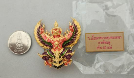 วัดใจเคาะเดียวแดงจ้า พญาครุฑ มีโชคพันล้าน หลวงพ่อโชคชัย วัดน้ำดิบ เนื้อมหาชนวนชุบทองลงยากายสีชมพู เคาะเดียวแดงจ่า
