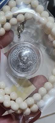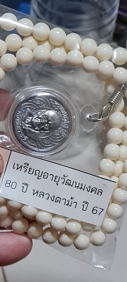 เหรียญอายุวัฒนมงคล 80 ปี เนื้อตะกั่ว(มีค่าดั่งทองคำ)หลวงตาม้า วัดถ้ำเมืองนะ พร้อมรอยจารหลวงตาม้า เลี่ยมจากวัดพร้อมประคำ