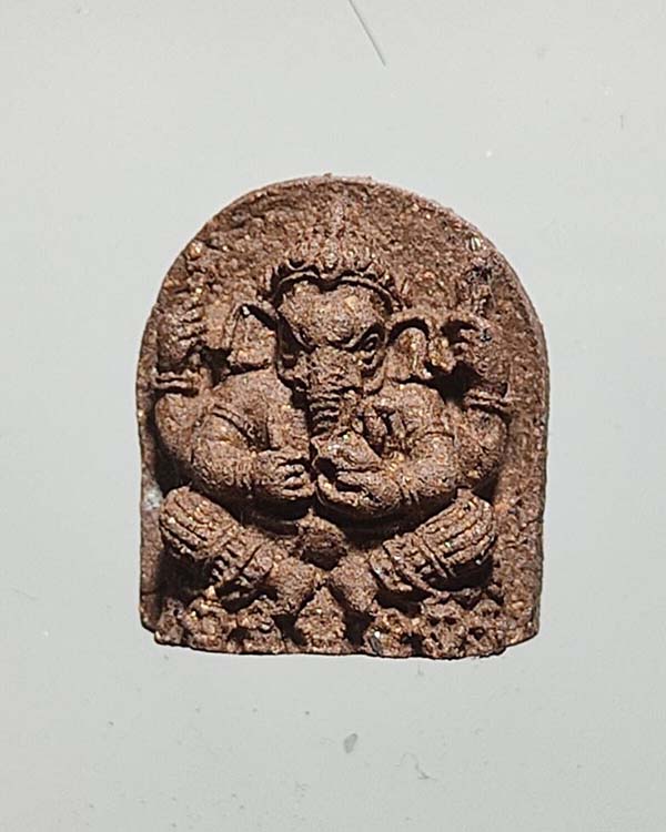พระพิฆเนศ หลวงปู่คำพันธ์ เนื้อผงเกสร หลังเรียบแบบฝังโค๊ต พลอยเสก ออกวัดแก่ง ตอย จ.อุบล. ปี 2539 สวยเดิมๆ