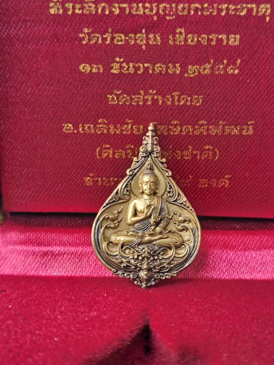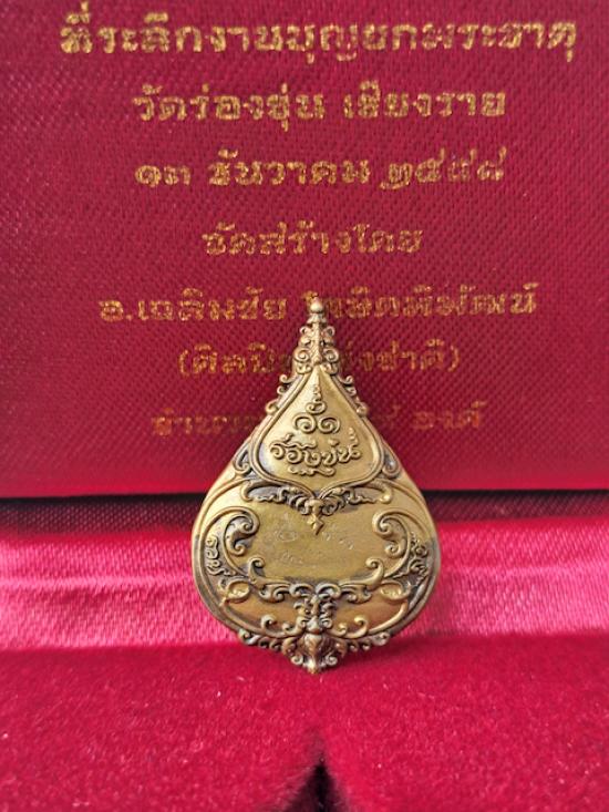 เปิดนำเสนอ เหรียญหล่อพระพุทธประทานพร หรือ พระวัดร่องขุ่น ปี 2558 เนื้อทองเหลืองรมดำขัดสว่าง พิมพ์เล็ก เกรด 6 หมายเลขประจำองค์เลข ๓๘๙๒ หลังเหรียญจารลายเซ็นสด