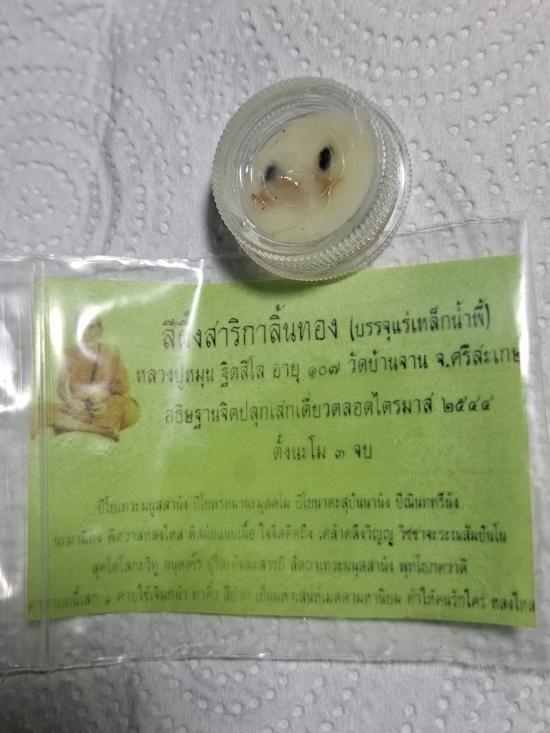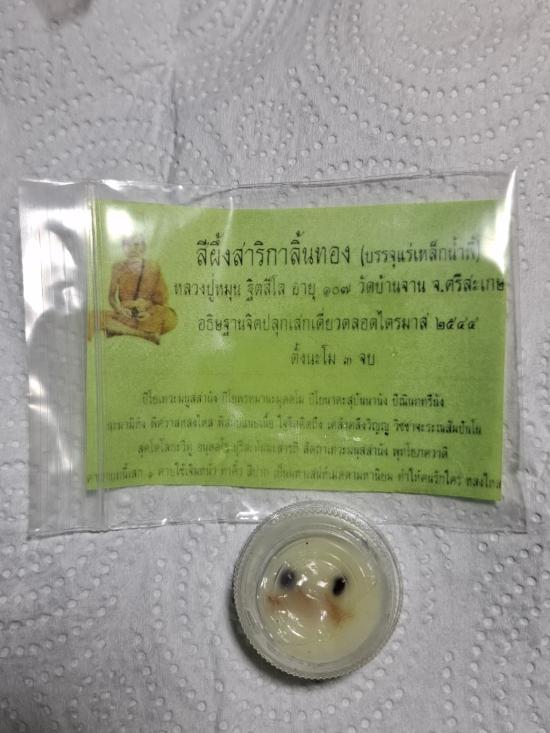 สีผึ้งสาริกาลิ้นทอง (บรรจุแร่เหล็กน้ำพี้) หลวงปู่หมุน ฐิตสีโล อายุ 107 ปี วัดบ้านจาน จ.ศรีสะเกษ อธิษฐานจิตปลุกเสกเดี่ยวตลอดไตรมาส 2544