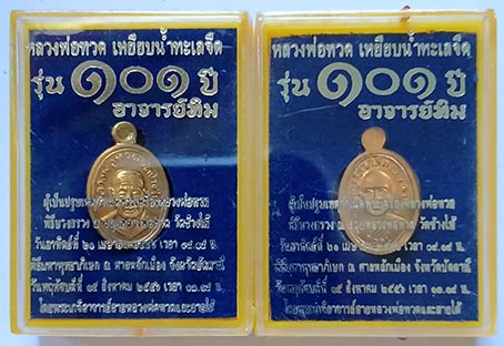 หลวงปู่ทวด เม็ดแตง"รุ่น101ปีอาจารย์ทิม"เนื้อทองดอกบวบ2องค์ พิธีศาลหลักเมืองจ.ปัตตานี ปี2556