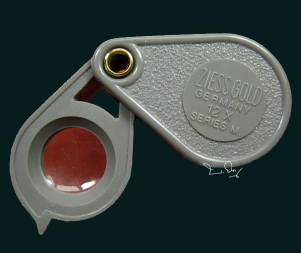 กล้องส่องพระ ZIESS GOLD 12X บอดี้อะคิลิคสีเทา เลนส์แก้วแท้ ใสปิ๊ง ใหม่เอี่ยม พร้อมพวงกุญแจรูปเกือกม้า ทำจาก stainless steel สี glossy gunmetal(ดำเงา) แถมไขควง
