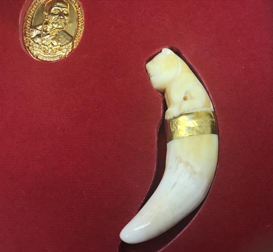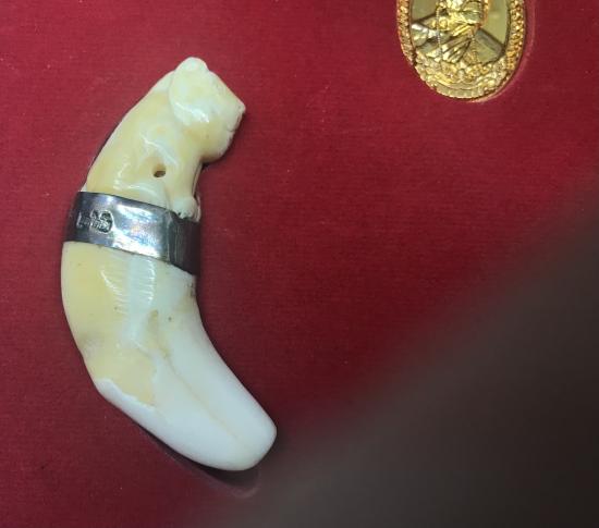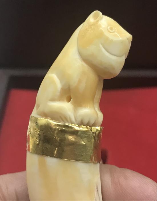 แกะจากเขี้ยวเสือเบงกลอ(เขี้ยวนำเข้า) ช่างแกะเป็นช่างที่แกะให้วัดคลองด่าน ผลงาออกมาดูสวยงามมาก