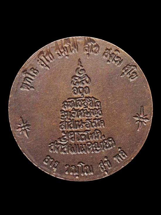 ด้านหลังเป็นยันต์องค์พระ เป็นคำพรที่พระบาทสมเด็จพระเจ้าอยู่หัวรัชกาลที่ 4 ทรงนิพนธ์ไว้ และเป็นพุทธพรที่ท่านเจ้าคุณนรรัตนราชมานิต วัดเทพศิรินทราวาส ใช้ประสาทพรให้ผู้เลื่อมใสในท่านอยู่เป็นประจำ ว่าดังนี้