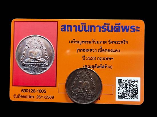 ...เหรียญพระแก้วมรกต วัดพระศรีๆ รุ่นหมดห่วง เนื้อทองแดง ปี2523 กรุงเทพๆ (คุณสุธันย์สร้าง)สภาพสวย พร้อมบัตร
