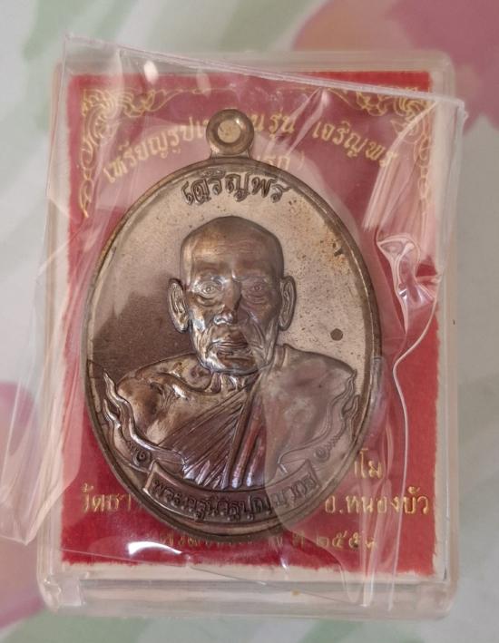 เหรียญหลวงพ่อพัฒน์ วัดห้วยด้วน เจริญพร(รุ่นแรก) ปี ๕๙ เนื้อโลหะผสมชนวน เลข ๔๖๗๔ สภาพจมูกโด่งๆผิวสวยงาม อยู่ในซีลเดิมกล่องเดิม