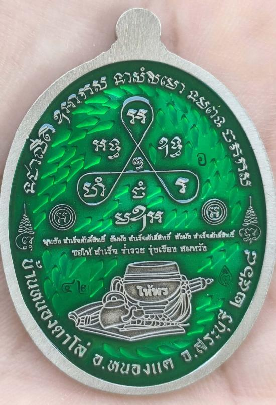 เหรียญพุทธศิลป์ หลวงพ่อสำเร็จศักดิ์สิทธิ์รุ่น"ให้พร" บ้านหนองตาโล่ จ.สระบุรี เนื้ออัลปาก้าซาติน หน้ากากชุบทองคำขาว ลงยาเขียวหน้า-หลัง มาสเตอร์พีช ลงยาพญานาค เลข ๔๒ พร้อมกล่อง พระสวยมากคับ