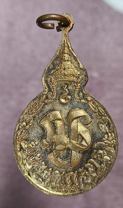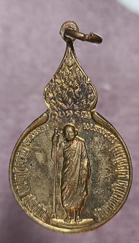 เหรียญยืนหลังพระปรมาภิไธยย่อ ภ.ป.ร. หลวงปู่แหวน สุจิณฺโณ วัดดอยแม่ปั๋ง อ.พร้าว จ.เชียงใหม่ ปี 2519