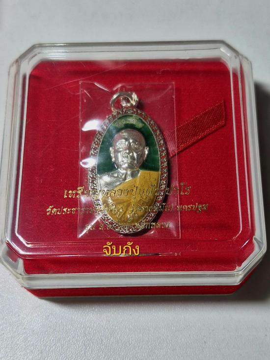 เหรียญใบขี้เหล็กหลวง หลวงปู่แผ้ว ปวโร เนื้อเงินลงยาเขียว หมายเลข1927 พระสวยสมบูรณ์ครับ