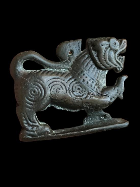 เคาะแรกแดงเลย สิงห์เนื้อสำริดเก่า กว้าง 1.2 นิ้ว สูง 1 นิ้ว