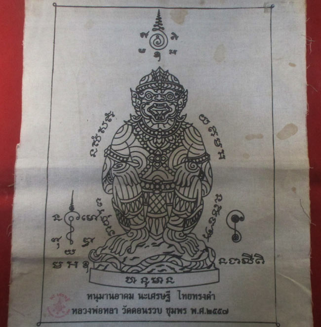 ผ้ายันต์ หนุมานอาคม นะเศรษฐี ไทยทรงดำ หลวงพ่อหลา วัดดอนรวบ ชุมพร พ.ศ. ๒๕๕๗ ครับ (พระบ้าน ครับ) |