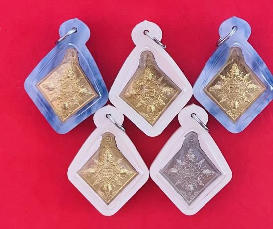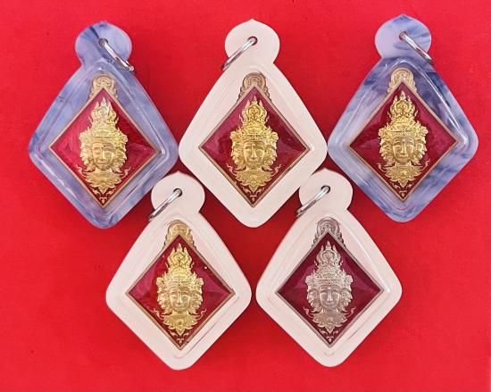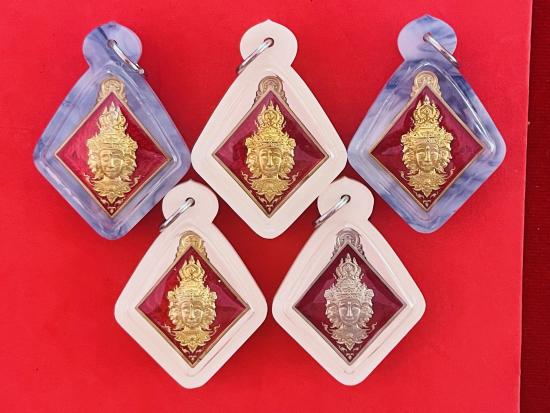 พระพรหม พระอาจารย์เชาว์นันท์ สำนักสงฆ์ห้วยยาว (รับพระ5เหรียญ) พร้อมเลี่ยม ทองทิพย์ยาแดง4เหรียญ เลข84,12,71,18 อัลปาก้ายาแดง เลข35