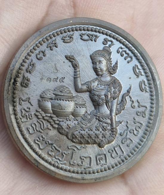 เหรียญโภคทรัพย์แม่นางกวัก รุ่น"เงินไหลกองทองไหลมา" ปี๖๖ พระอาจารย์ต้อม วัดท่าสะแบง จ.ร้อยเอ็ด เนื้อคันฉ่องโบราณ หมายเลข ๑๙๕ พร้อมกล่อง เหรียญสวย เลขสวย เลขมงคล น่าสะสมคับ