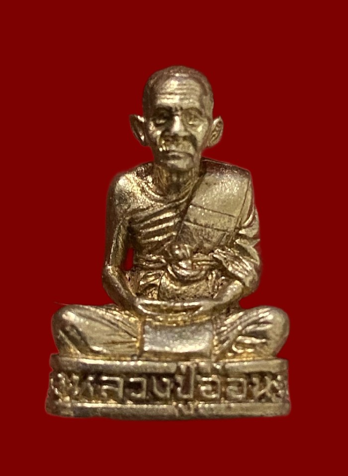 รูปหล่อหลวงปู่อ่อน วัดเนินมะเกลือ จ.พิษณุโลก รุ่นมหาสิทธิโชค ไตรมาส เนื้อเงิน ตอกโค๊ตใต้ฐาน ปี 2540