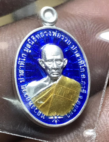 เหรียญเม็ดแตง หลวงพ่อรวย รวยชนะจน เนื้อเงินลงยา ปี62 หมายเลข679
