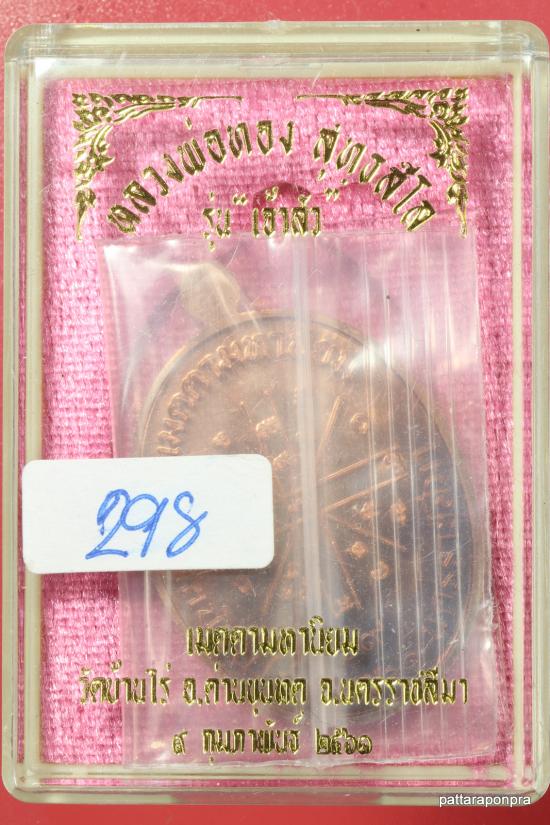 เหรียญหลวงพ่อทอง รุ่นเจ้าสัว ปี 2561 เนื้อทองแดง หมายเลข 298