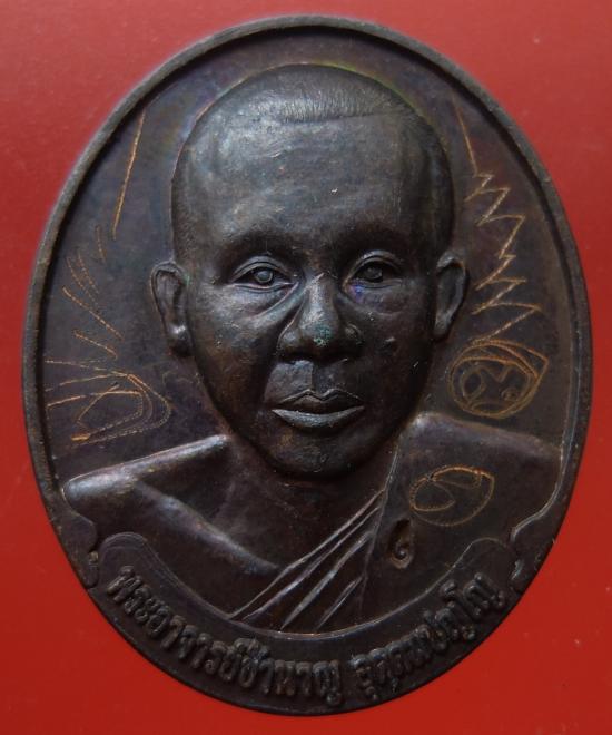 เหรียญกวนข้าวทิพย์ หลวงพ่อชำนาญ วัดบางกุฏีทอง มีจารด้านหน้า