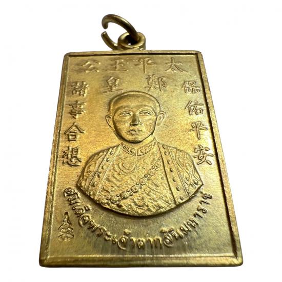 เหรียญสมเด็จพระเจ้าตากสินมหาราช เผด็จศึกค่ายบางกุ้ง 2311 ที่ระลึกบูรณะวิหาร วัดบางกุ้ง เนื้อทองเหลืองตอกโค้ต หลวงพ่อหยอด ปี 2535 จ.สมุทรสงคราม สภาพสวยเดิม