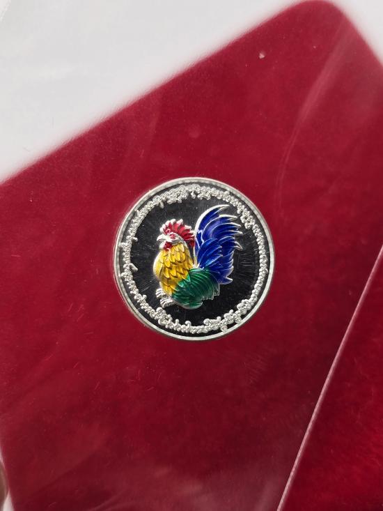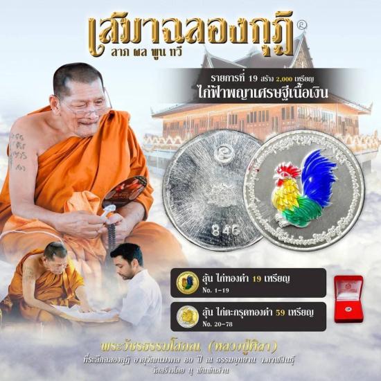 เหรียญ ไก่ฟ้าพญาเศรษฐี ฉลองกุฏิ อายุวัฒนมงคล๘๐ปี หลวงปู่มหาศิลา หลวงปู่ศิลา สิริจันโท ธรรมอุทยาน วัดพระธาตุหมื่นหิน จ.กาฬสินธุ์ เนื้อเงิน เลข 752 มีกล่องเดิม