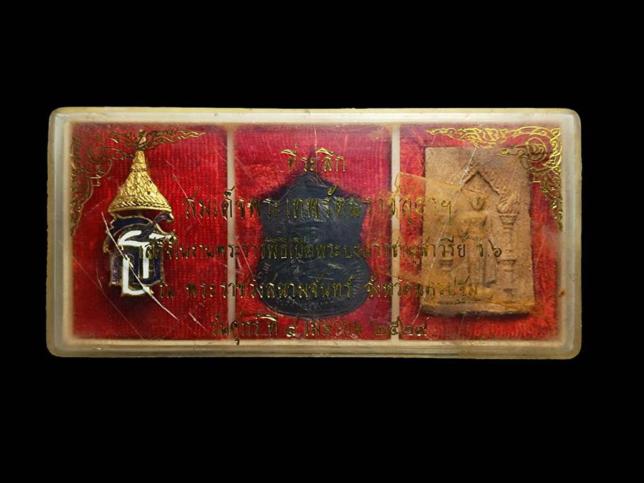 พระชุดที่ระลึก สมเด็จพระเทพฯ เสด็จในงานพระราชพิธีเปิดพระบรมราชานุสาวรีย์ ร.6 ณ.พระราขวังสนามจันทร์ จ.นครปฐม ปี พ.ศ.2529 พิธีใหญ่ สวยครบชุดพร้อมกล่องเดิม