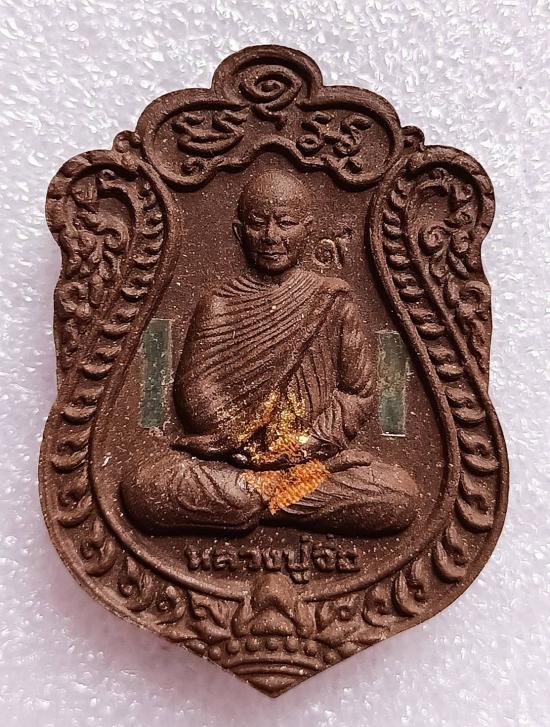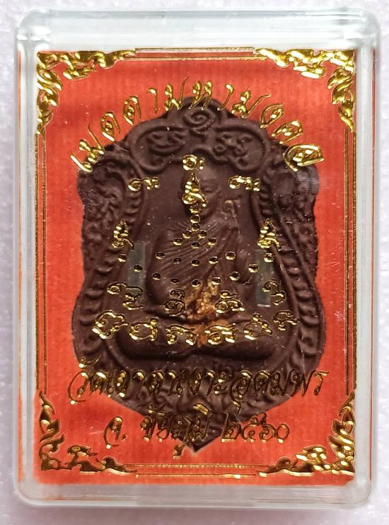 พระผงเสมาเมตตามหามงคลปี๖๐ ลป.จื่อ วัดเขาตาเงาะ เนื้อผงชานหมากฝังตะกรุด ปิดทอง-จีวร