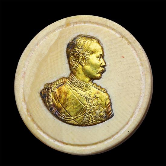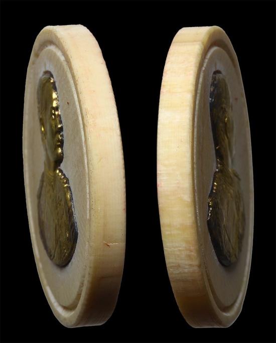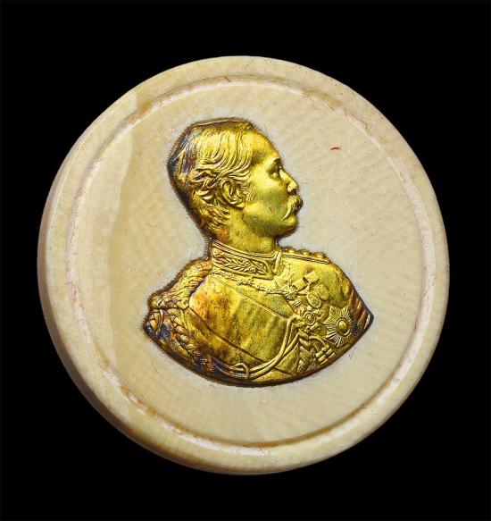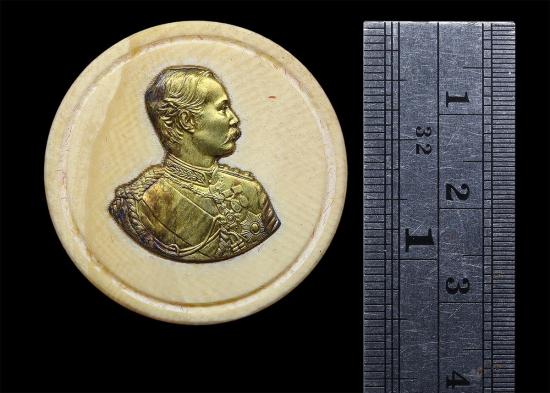 รูปเหมือน ร.5 เนื้องาช้างแมมอธ หน้ากากทองคำ หลวงพ่ออุตตมะ วัดวังก์วิเวกการาม กาญจนบุรี สร้างปี 2540 สวยมาก
