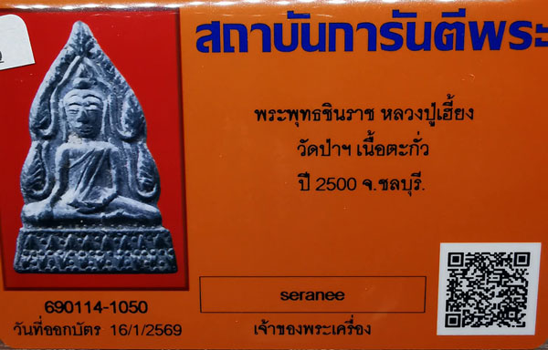พระพุทธชินราช หลวงปู่เฮี้ยง วัดป่าฯ เนื้อตะกั่ว ปี2505 จ.ชลบุรี + บัตรG-pra สภาพเดิมค่ะ