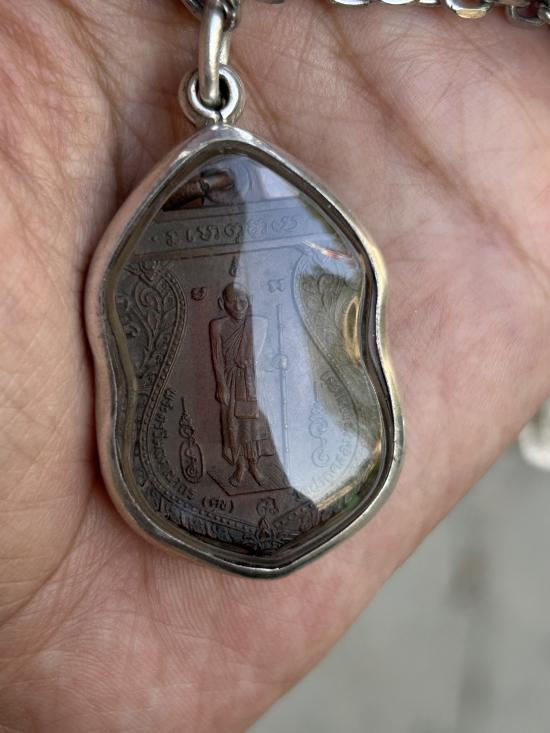 เคาะเดียว..เหรียญหลวงปู่ศุข ศาลหลักเมืองชัยนาท สภาพสวย ปี2521 พร้อมเลี่ยมเงินแท้ผ่าหวายห่วงหนาๆ พร้อมบัตรG