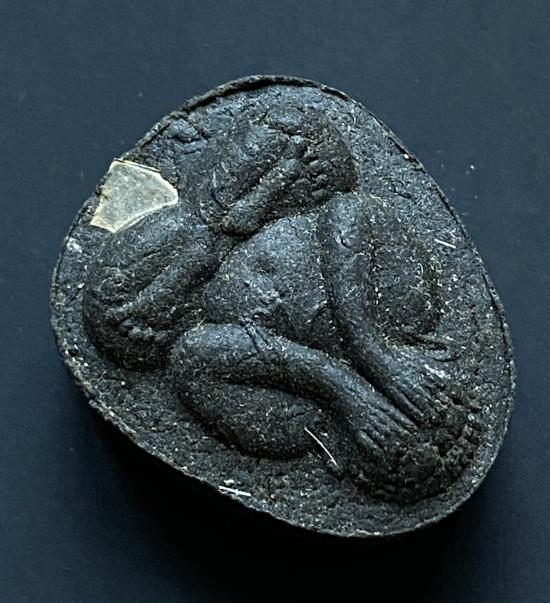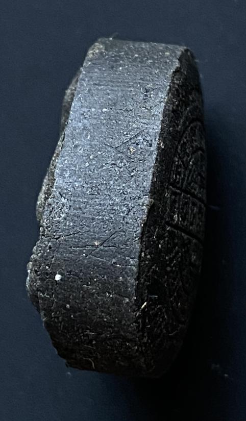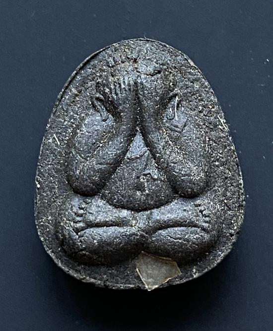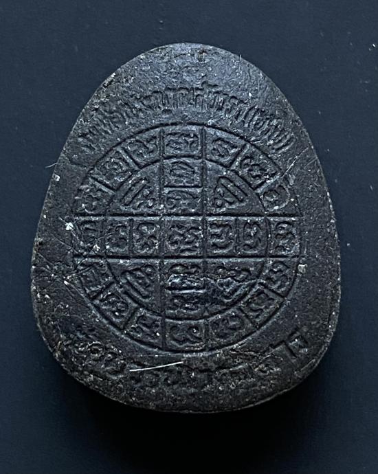 พระปิดตายันต์ดวงเล็ก ปี2523 สมเด็จพระญาณสังวร (เจริญ) วัดบวรนิเวศ_(เนื้อผงใบลานดำปลดหนี้)_พิมพ์หนา_มีเส้นเกศา_