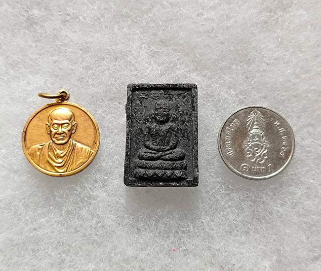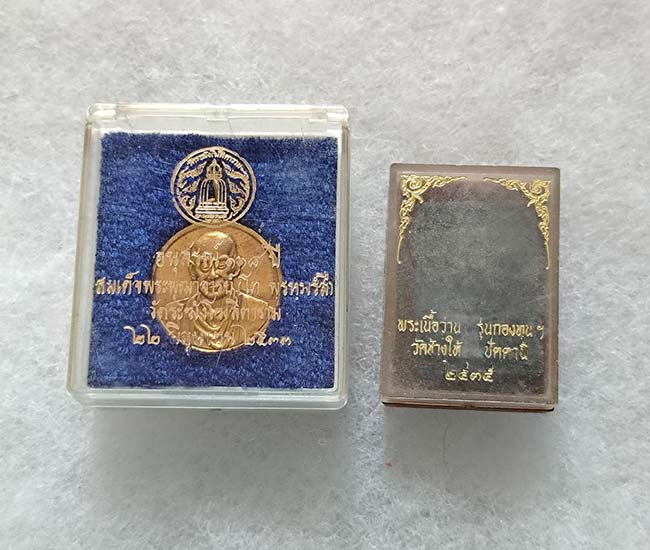 เหรียญสมเด็จพระพุฒาจารย์(โต) วัดระฆังฯ รุ่น 118 ปี พิมพ์เล็ก เนื้อทองแดงกะไหล่ทอง ปี 2533 + พระผงว่าน หลวงปู่ทวด วัดช้างให้ ปี 2535