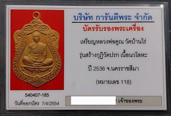 เหรียญเสมาวัดปรก หลวงพ่อคูณ วัดบ้านไร่ เนื้อนวะ เลข๑๑๘