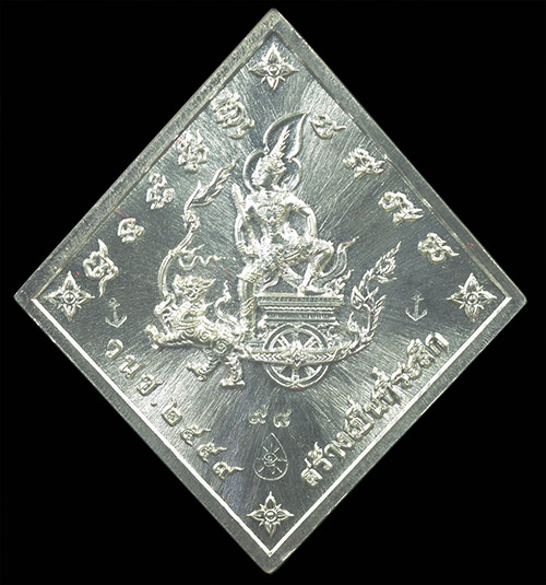 เหรียญข้าวหลามตัด บูรพาบารมี หลวงพ่อรัตน์ วัดป่าหวายเษกเดี่ยว เนื้อเงินลงยาแดง หมายเลข 98 พร้อมกล่องเดิมจากวัด