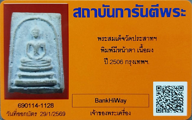 พระสมเด็จ วัดปราสาทฯ พิมพ์มีหน้ามีตา ปี2506