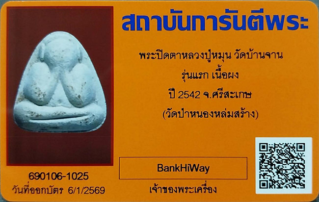 ปิดตาหลวงปู่หมุน รุ่นแรก(ซาวน์เบ้าท์) (วัดป่าหนองหล่มสร้าง)