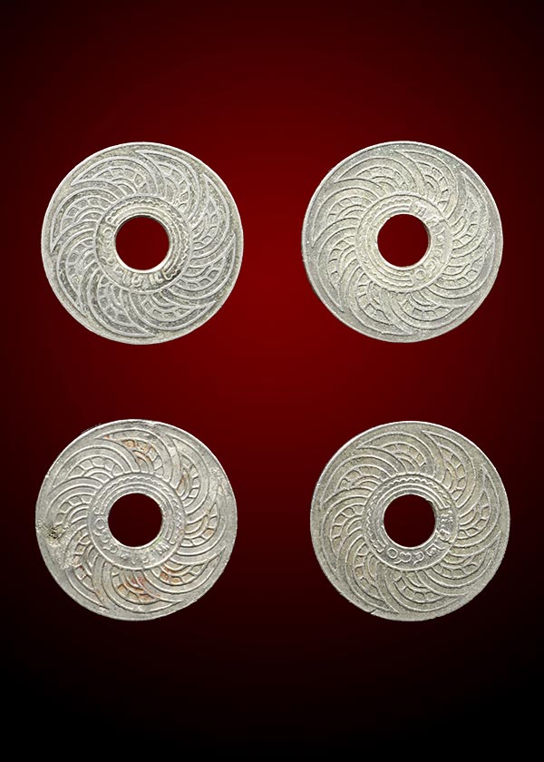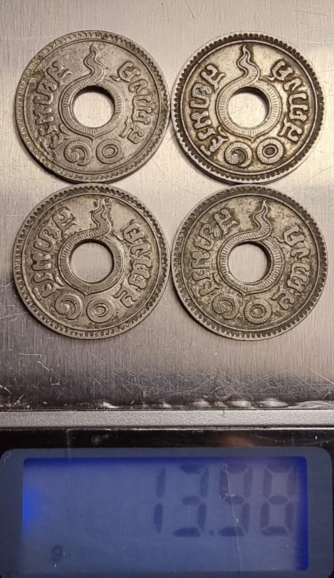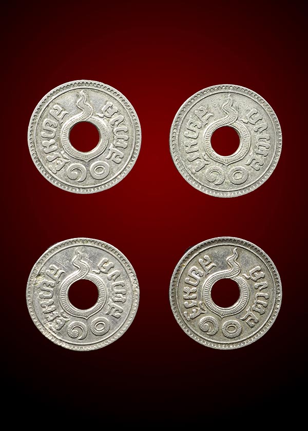 เหรียญ ๑๐ สตางค์ พ.ศ.๒๔๘๐ เนื้อเงิน น้ำหนัก 13.98 กรัม (จำนวน 4 เหรียญ)