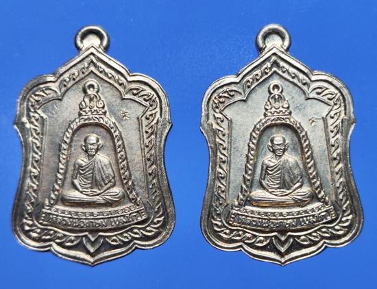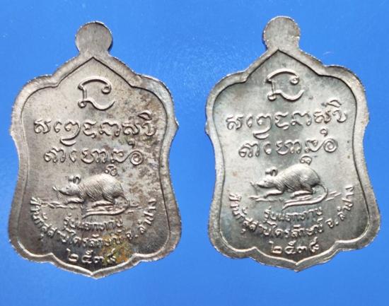 วัดใจ เหรียญหลวงพ่อเกษม เขมโก รุ่นแจกทาน เนื้ออัลปาก้า ปี 2538 เดิมๆพร้อมกล่อง 2 องค์
