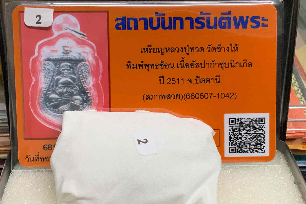 DeDee เหรียญพุทธซ้อน หลวงปู่ทวด วัดช้างให้ ปี ๑๑ เนื้ออัลปาก้าชุบนิกเกิล บัตรสภาพสวย DeDee