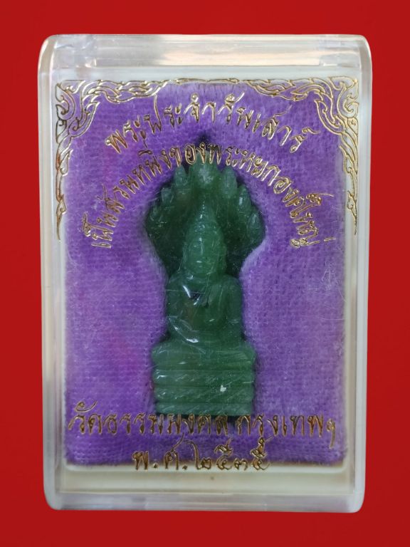 พระเนื้อหยกแกะ รุ่นแรก พิมพ์พระประจำวันเสาร์ ( นาคปรก ) ปี ๒๕๓๕ หลวงพ่อวิริยังค์ วัดธรรมมงคล สภาพสวยเดิมพร้อมกล่อง