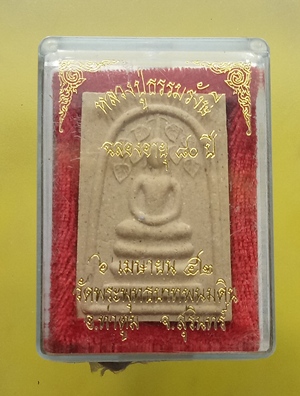 พระสมเด็จปรกโพธิ์ หลังรูปเหมือน ฉลองอายุ ๘๐ ปี หลวงปู่ธรรมรังษี วัดพระพุทธบาทพนมดิน อ.ท่าตูม จ.สุรินทร์ ปี ๔๒ สวย พร้อมกล่องเดิม วัดใจ